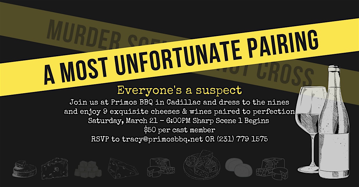 Get ready for an unforgettable in-person experience at A Most Unfortunate Pairing! Dive into an evening filled with unexpected twists and turns as two worlds collide in the most entertaining way. Dress to the nines and experience 9 exquisite cheeses and wines paired to perfection.