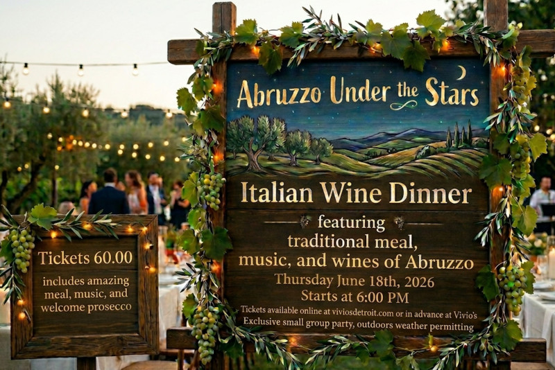 Italian Abruzzese wines will be available for purchase by the glass. 21 and over.