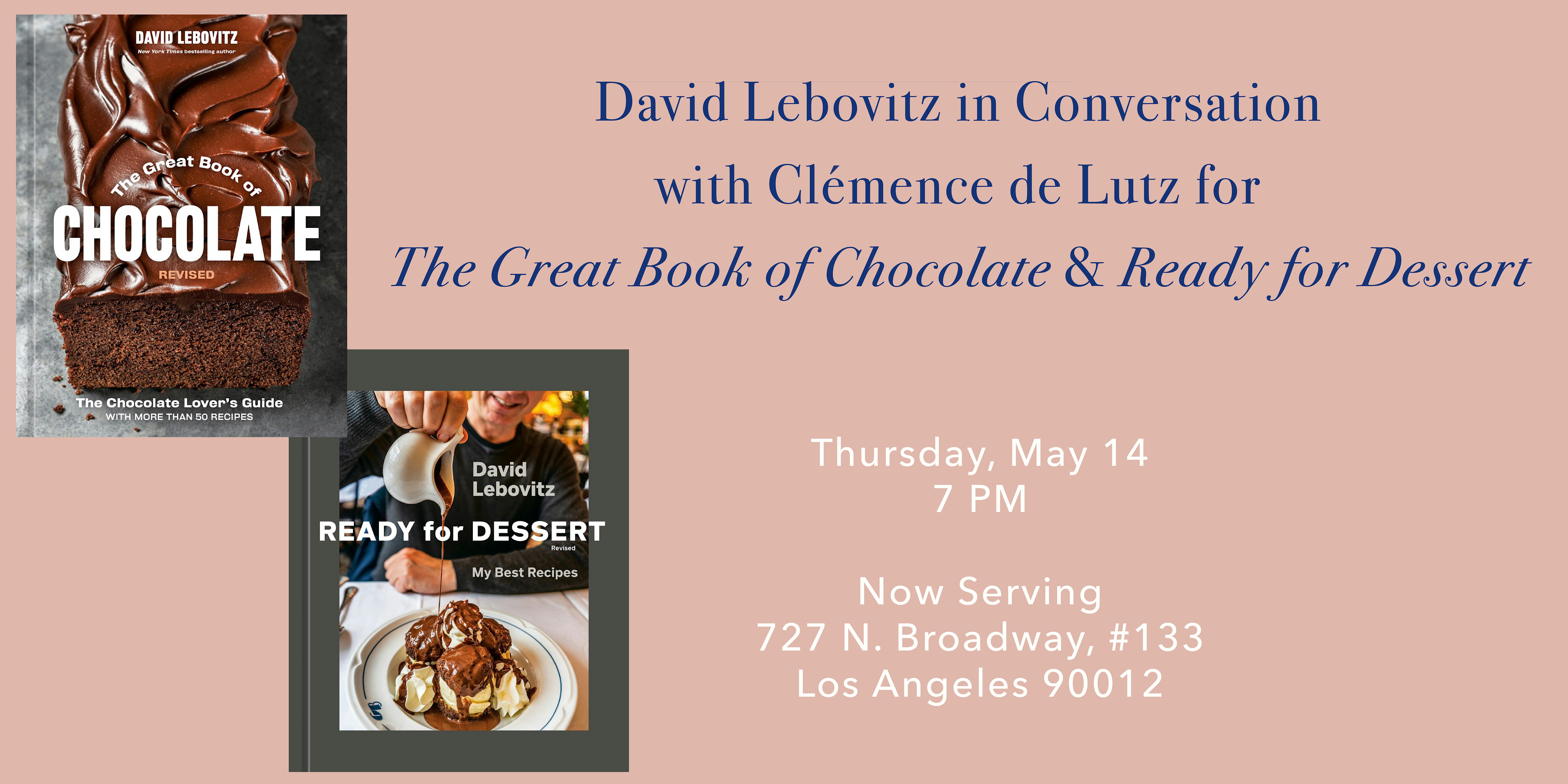 David Lebovitz in conversation for The Great Book of Chocolate and Ready for Dessert. Moderated by Clémence de Lutz, owner and baker of Petitgrain Boulangerie. Book signing to follow.