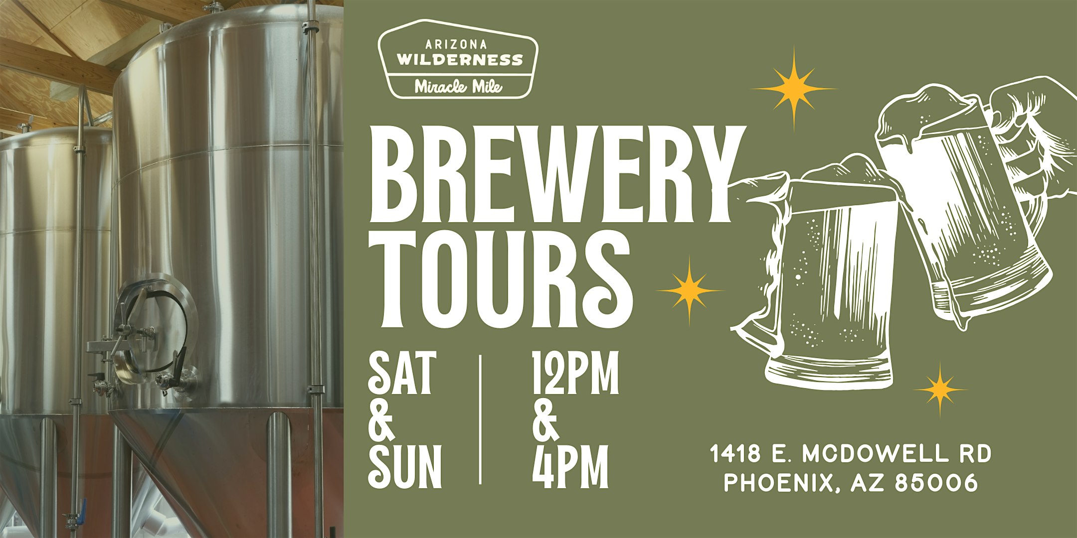 Get a look inside the heart of Arizona Wilderness Brewing Co. Miracle Mile for a 30–45 minute storytelling brewery tour rooted in place, purpose, and process. Guests will enjoy guided samples while learning how our beers come to life—from thoughtfully sourced local ingredients to our sustainability-driven brewing philosophy. Along the way, we’ll share the stories behind the brewery, the landscapes that inspire us, and the intentional choices that shape every pint. Each tour concludes with a take-home glass to remember the experience.
