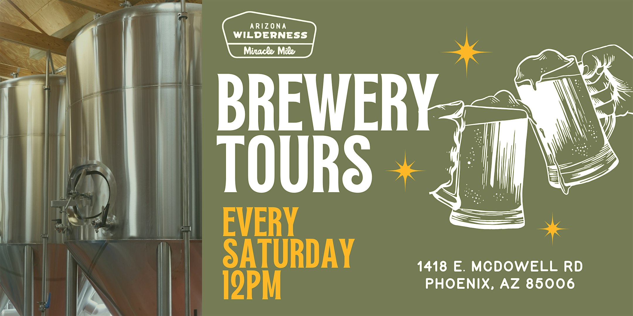 Get a look inside the heart of Arizona Wilderness Brewing Co. Miracle Mile for a brewery tour rooted in place, purpose, and process. Guests will enjoy guided samples while learning how our beers come to life—from thoughtfully sourced local ingredients to our sustainability-driven brewing philosophy. Along the way, we’ll share the stories behind the brewery, the landscapes that inspire us, and the intentional choices that shape every pint. Each tour concludes with a take-home glass to remember the experience.