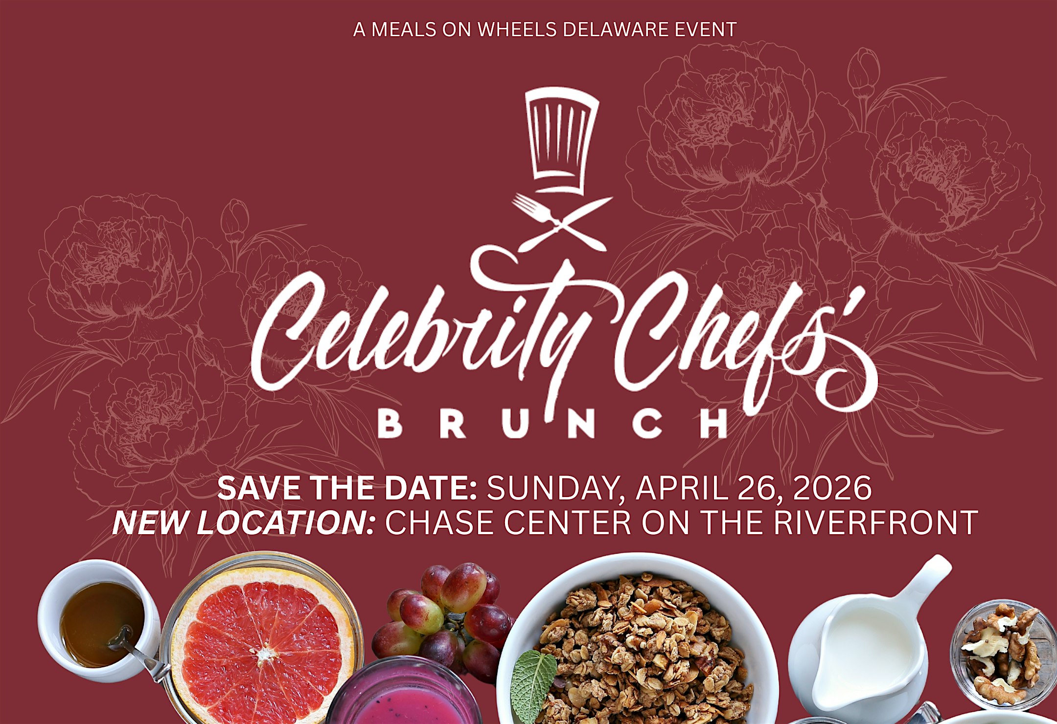 Join us on Sunday, April 26, 2026, for our 29th year of the Celebrity Chefs’ Brunch, held at the Chase Center on the Riverfront in Wilmington, DE. As a guest, you will enjoy delicious brunch bites prepared by top chefs throughout the nation, fine wines and brunch cocktails, live entertainment and an attractive auction! Proceeds benefit Meals On Wheels Delaware.