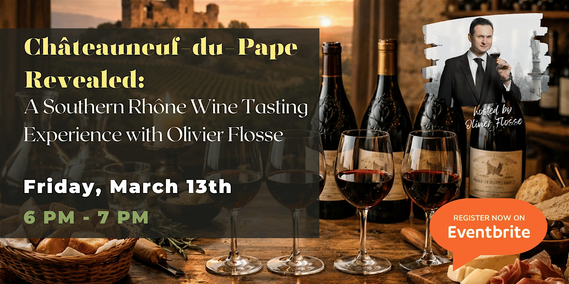 Immerse yourself in one of the most celebrated wine regions in the world at Châteauneuf-du-Pape Revealed: A Southern Rhône Wine Tasting Experience. On Friday, March 6th, join us in the Private Tasting Room for an elegant and educational journey into the heart of France’s Southern Rhône Valley, where legendary wines are crafted from historic terroir, with Sommelier Olivier Flosse.