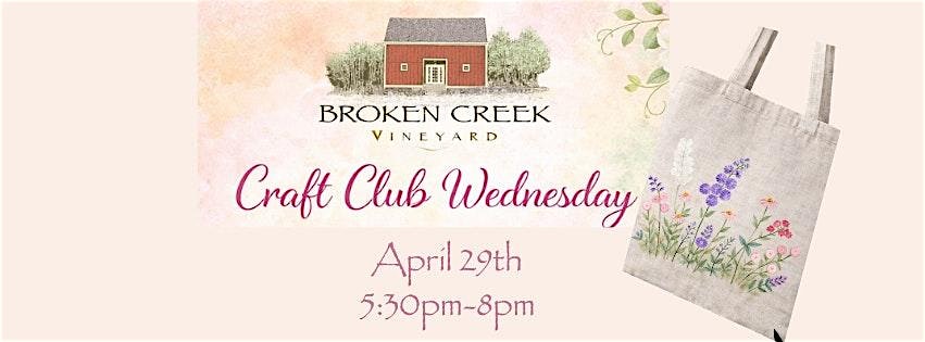 Join us on April 29th from 5:30–8pm for the perfect mid-week night out at Broken Creek Vineyard! Grab your friends, sip some wine, and get creative as you paint your very own spring-inspired tote bag
