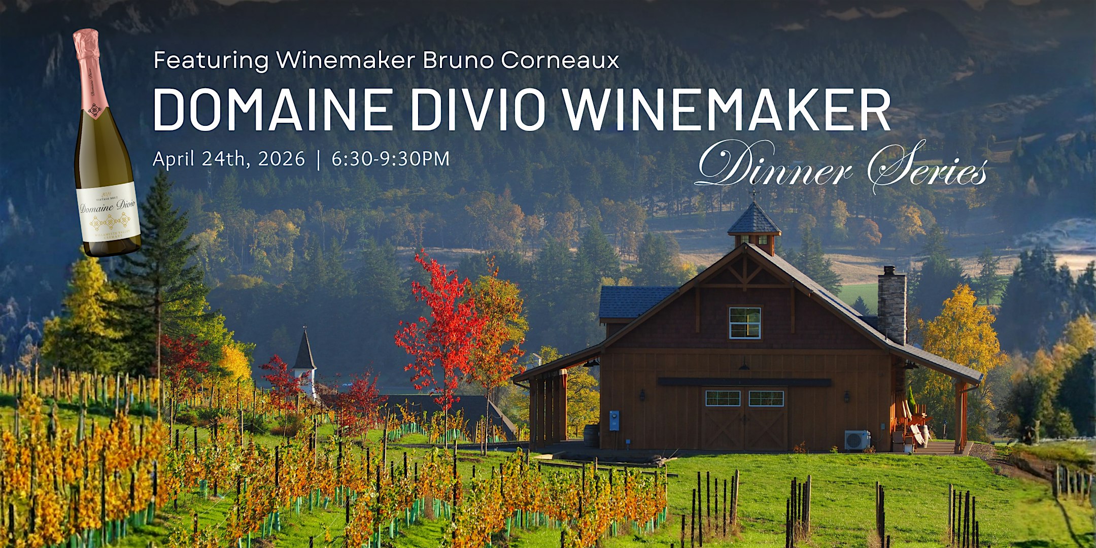 Join us for the next chapter in our Winemaker Dinner Series—an exclusive evening featuring the wines of Domaine Divio with special guest Bruno Corneaux, Owner and Head Winemaker of Domaine Divio and Director of Viticulture for Northwest Wine Company.