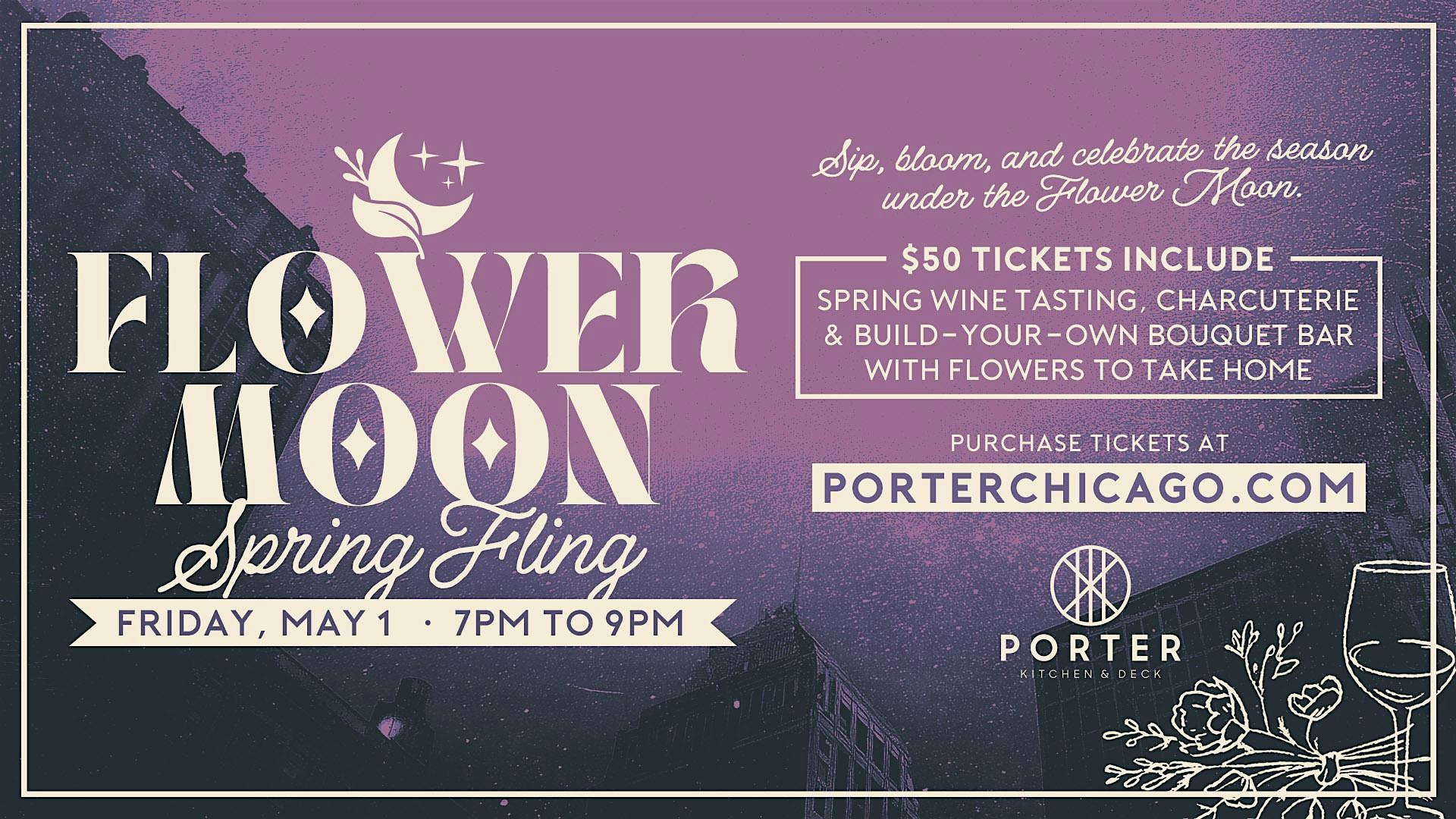Perfect ForThe Flower Moon is the traditional full moon of May, symbolizing blooming flowers and the renewal of spring. This event captures that spirit by bringing together fresh florals, seasonal flavors, and a joyful spring gathering.