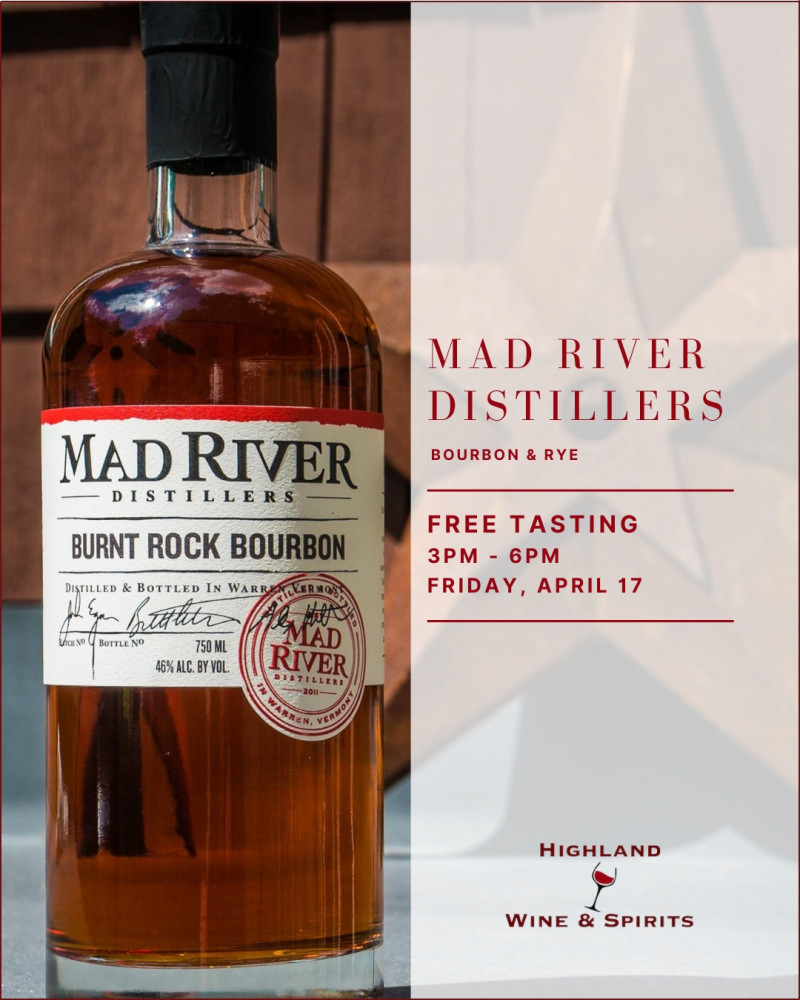 Mad River Distillers ferments, distills and bottles all of its spirits in Vermont from local and fair trade ingredients. Their whiskey mashbills contain unique grains, including oats, chocolate rye and maple-wood smoked barley. Their seasonal apple brandy is aged in new oak for an American spin on a European classic.