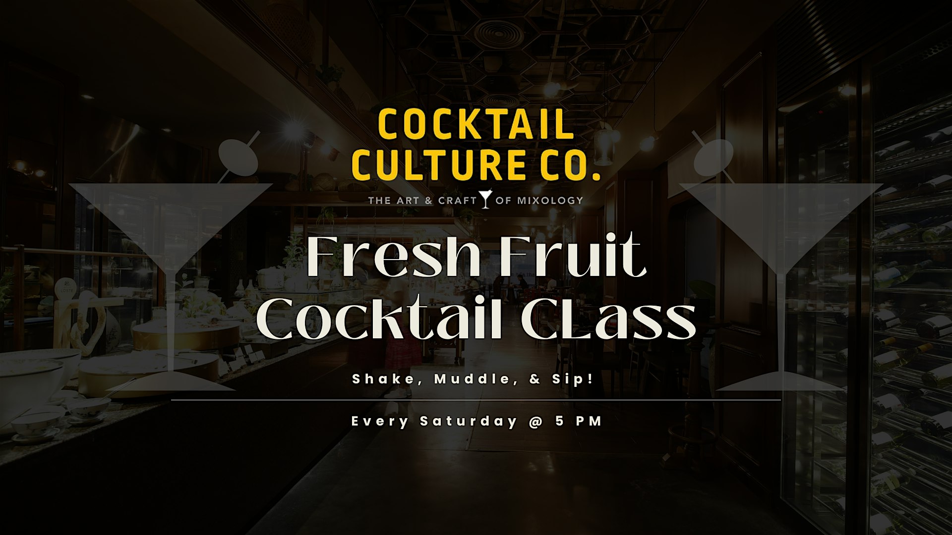 Discover expert techniques for muddling, infusing, and balancing flavors to create refreshing, fruit-forward drinks that taste as good as they look. Whether you’re a cocktail enthusiast or just love fresh, flavorful sips, this class is perfect for anyone looking to elevate their home bartending game.