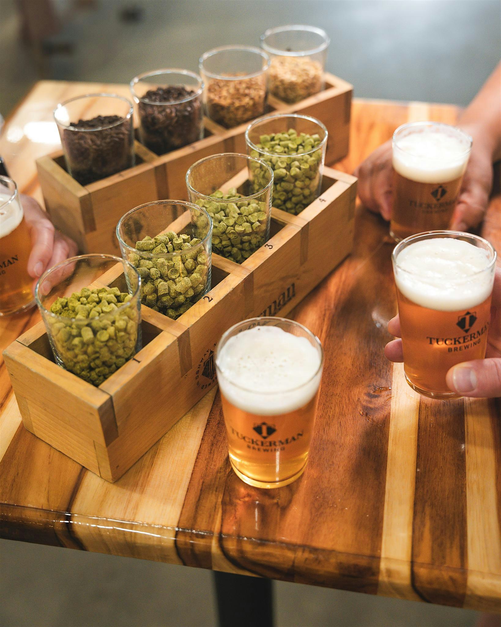 Join us for a guided tasting and tour! Each tour includes a flight of four distinct beers and a guided tasting, allowing you to experience the flavors and nuances that make each style unique. Take a tour behind the scenes for an in depth look at our process, learn about how Tuckerman Brewing started, and how it became what it is today.