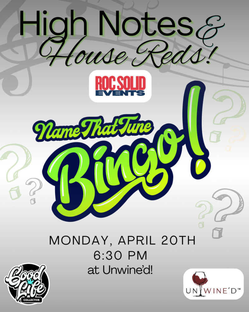 Get ready for a night where music, community, and pure fun collide. Unwine’d is teaming up with Roc Solid Events and Good Life Collective to bring you an unforgettable edition of Name That Tune Bingo — the high‑energy music party that’s been taking Rochester by storm!