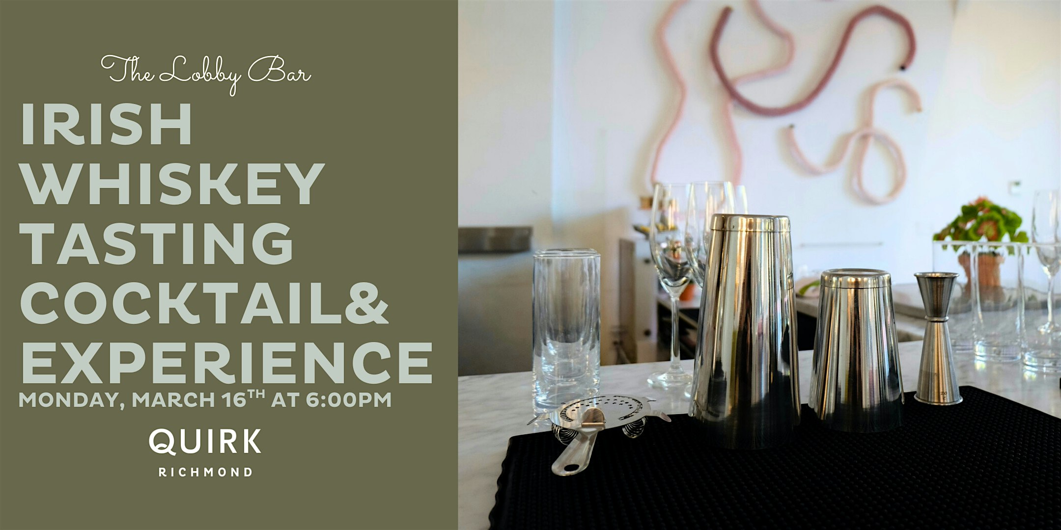 Join one of our craft bartenders at Quirk Cafe - where Colin Loudy will be joining us with three of his favorite Irish Whiskeys. We'll be tasting and learning all three! Following, you'd select one of three cocktail choices to learn to make your own.