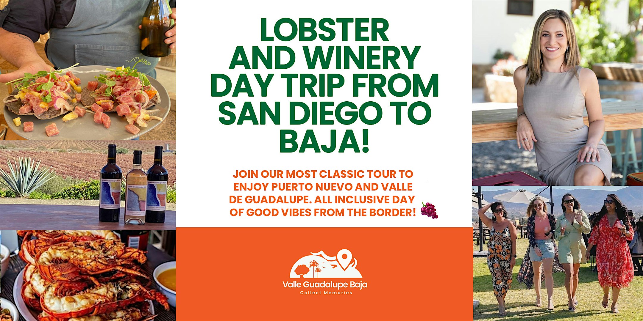 Roundtrip transportation from the PedEast border crossing, bilingual tour hosts, full lobster lunch with drink and robust wine tastings at two of our favorite Valle de Guadalupe wineries. At our second winery enjoy a cheese plate with your wines.