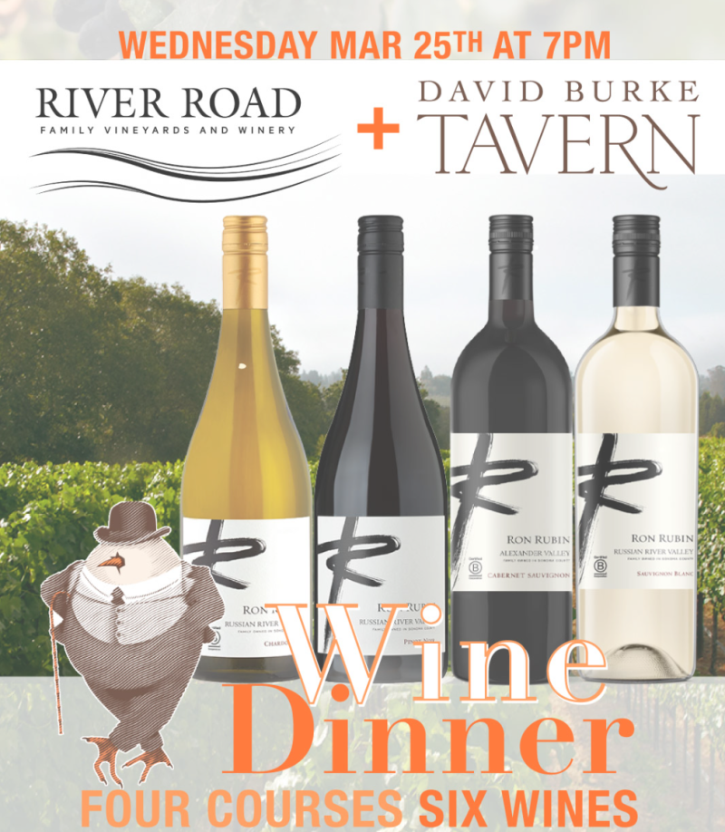 The 2026 wine Dinner Series at David Burke Tavern continues on Wednesday, March 25 with bit of Epicurean March (Pricing) Madness - a si wines paired with four courses for just $95. Wines from Sonoma's Russian Valley will take center stage. Specifically, those wines deemed intriguing enough to deliver what he calls "A beautiful experience for everyone" by River Road Family Vineyards and Winery owner Ron Rubin.