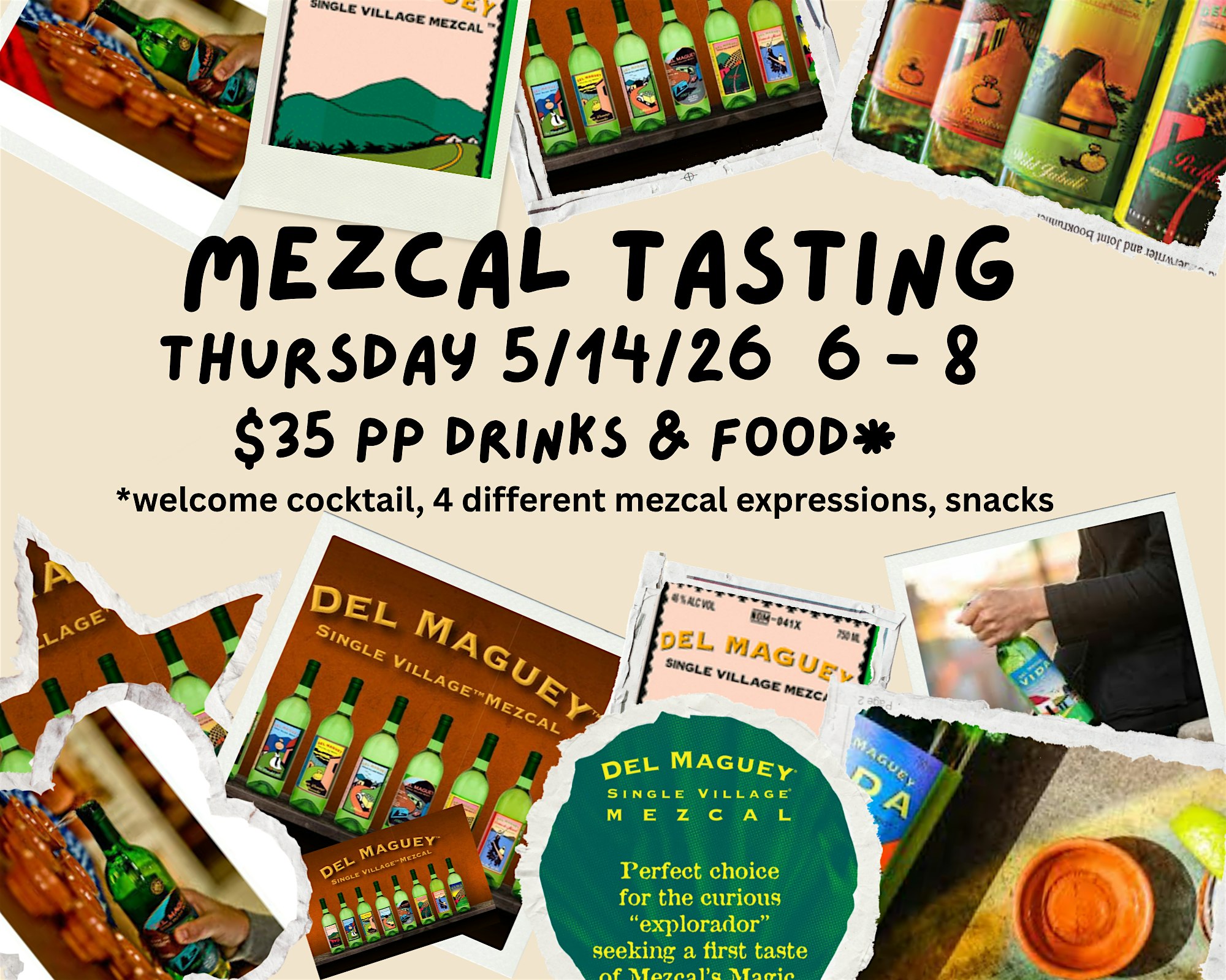 Ready for a night of awesome flavors? Join us in person to dive into the rich, smoky world of Mezcal with the experts from Del Maguey. Enjpy a welcome cocktail, 4 different expressions of Del Maguey Mezcal and light snacks. It’s gonna be chill, fun, and full of tasty sips. Bring your friends or come solo—either way, you’re in for a great time!