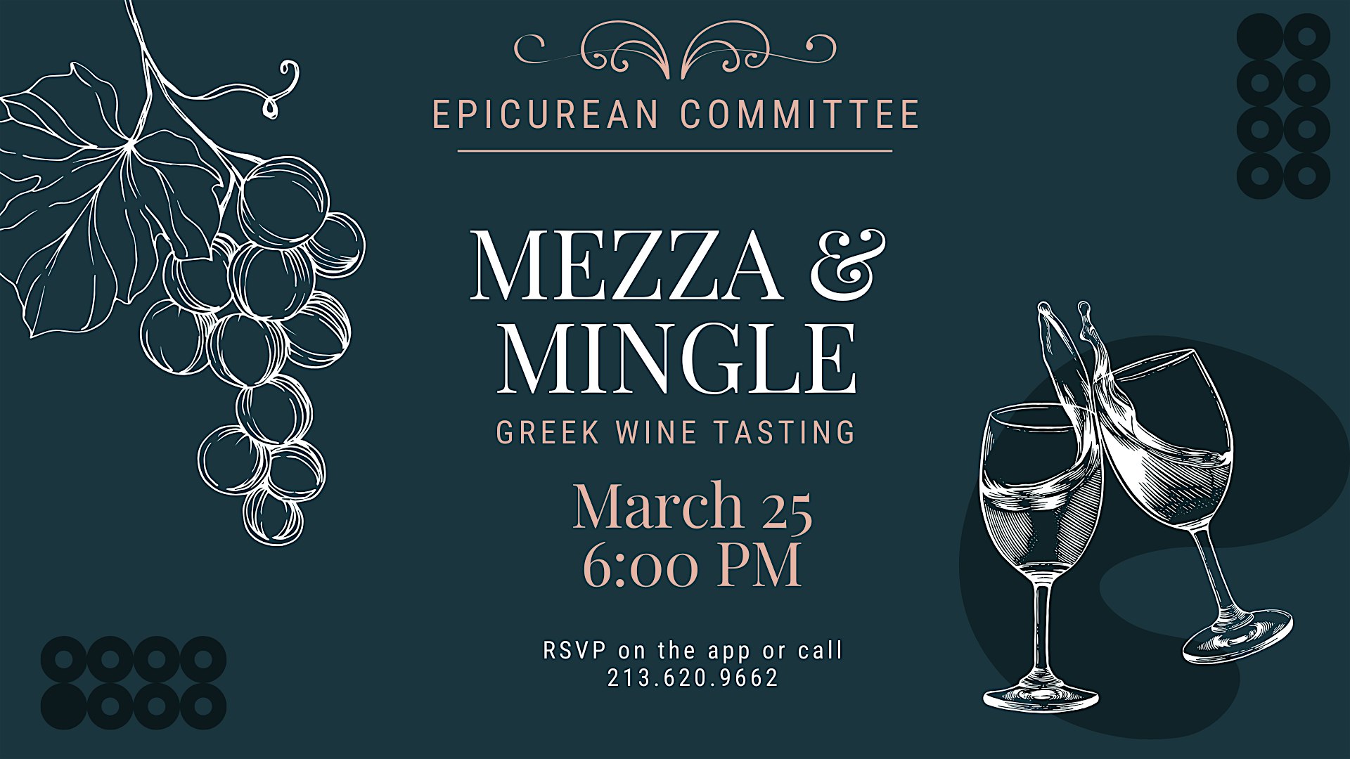 Experience the flavors of the Mediterranean at Mezza and Mingle. Hosted by the Epicurean Committee