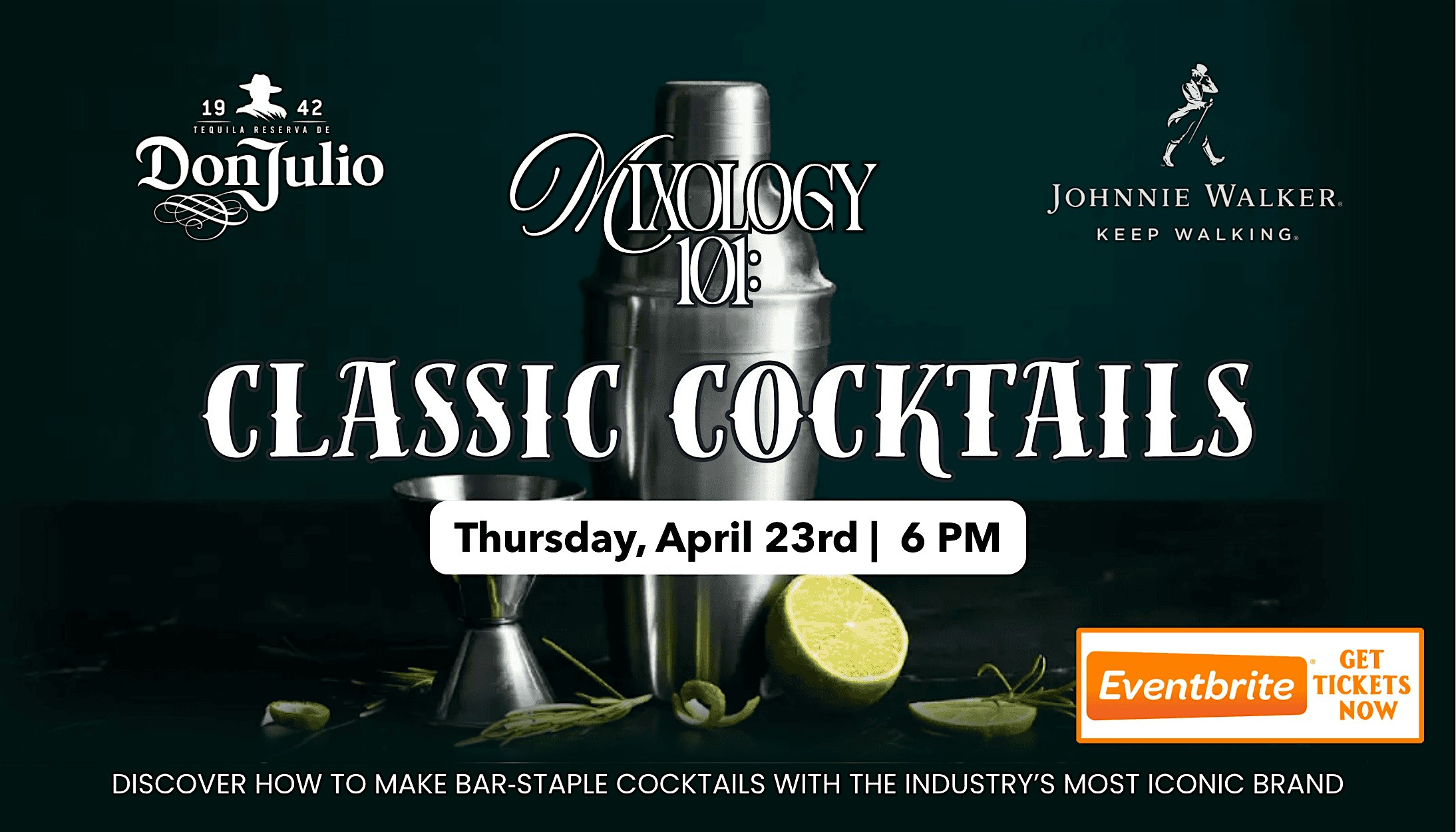 Join us on Thursday, April 23rd for an unforgettable evening of cocktails, craftsmanship, and premium spirits at our Johnnie Walker & Don Julio Cocktail Experience, a hands-on mixology class designed to elevate your cocktail game.