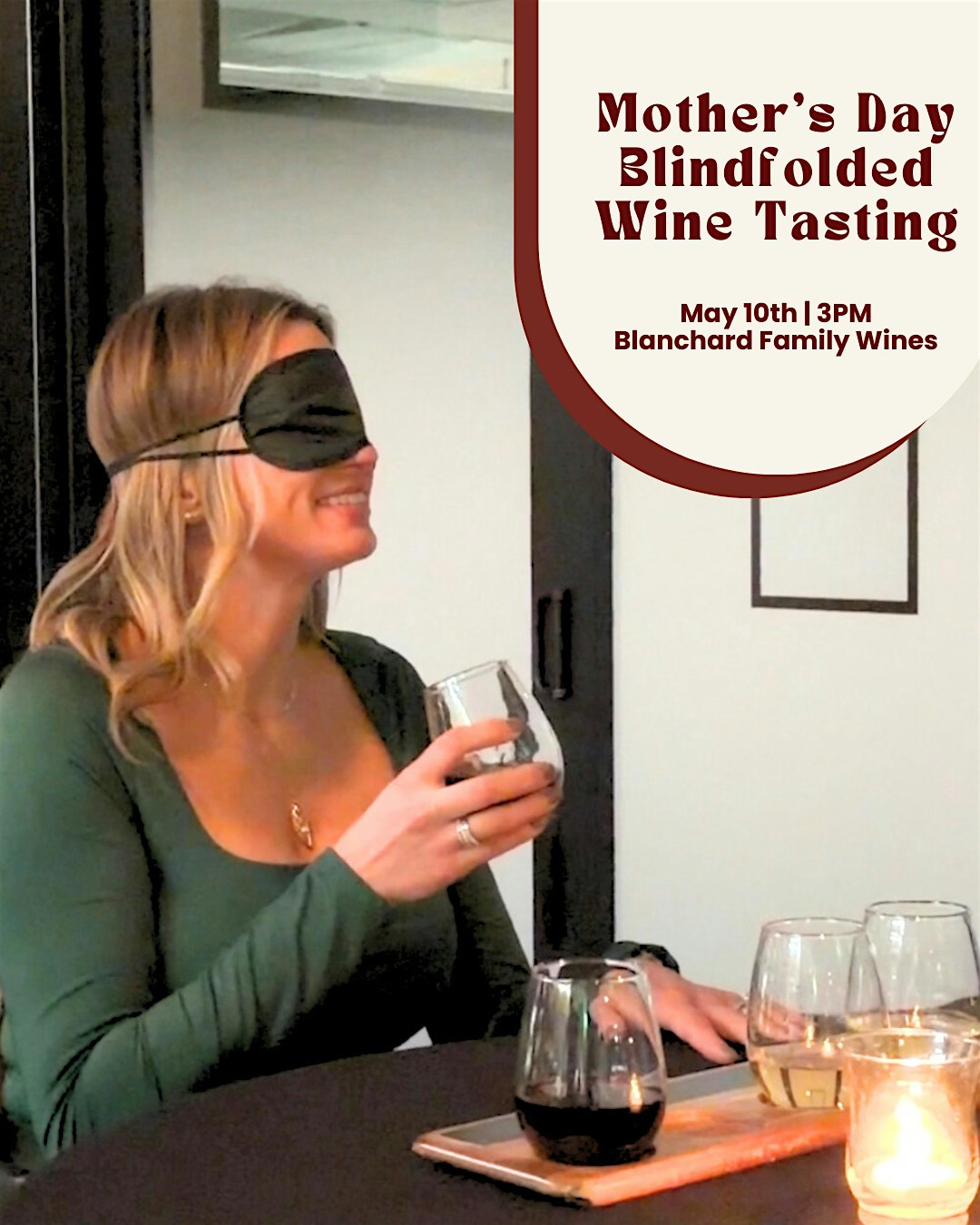 This Mother’s Day weekend, slow down, ditch the distractions, and trust your senses. Join us Sunday, May 10th at 3PM for a fun Blindfolded Wine Tasting designed to spark connection and laughter.