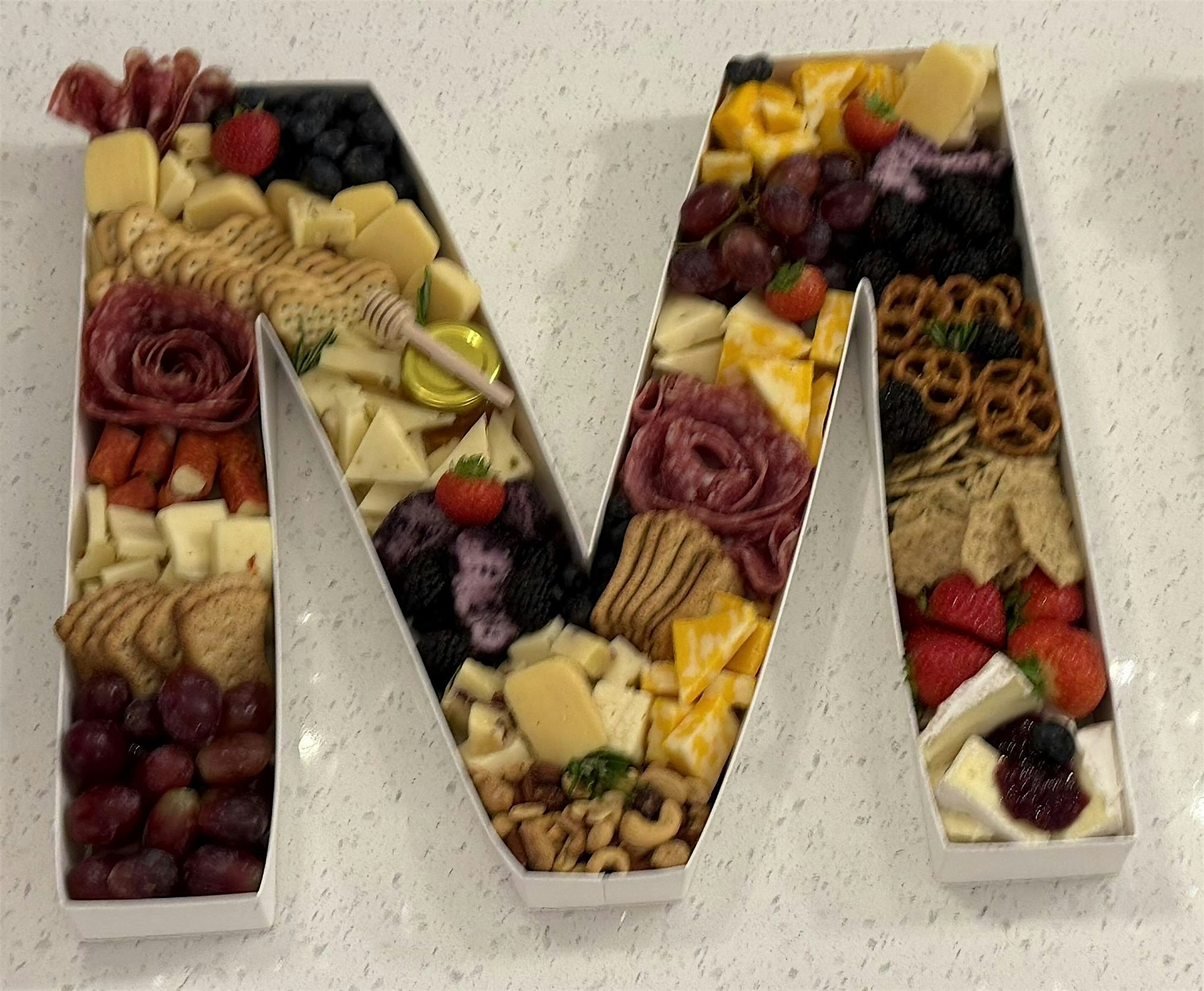 Join Cassie & Taylor, owners of Boards and Bites for a festive Mother's Day workshop! Create a personalized charcuterie experience by filling an 'M' shaped board with curated meats, cheeses, and accompaniments. Perfect for gifting or snacking, your masterpiece will be expertly wrapped for you to enjoy over the weekend