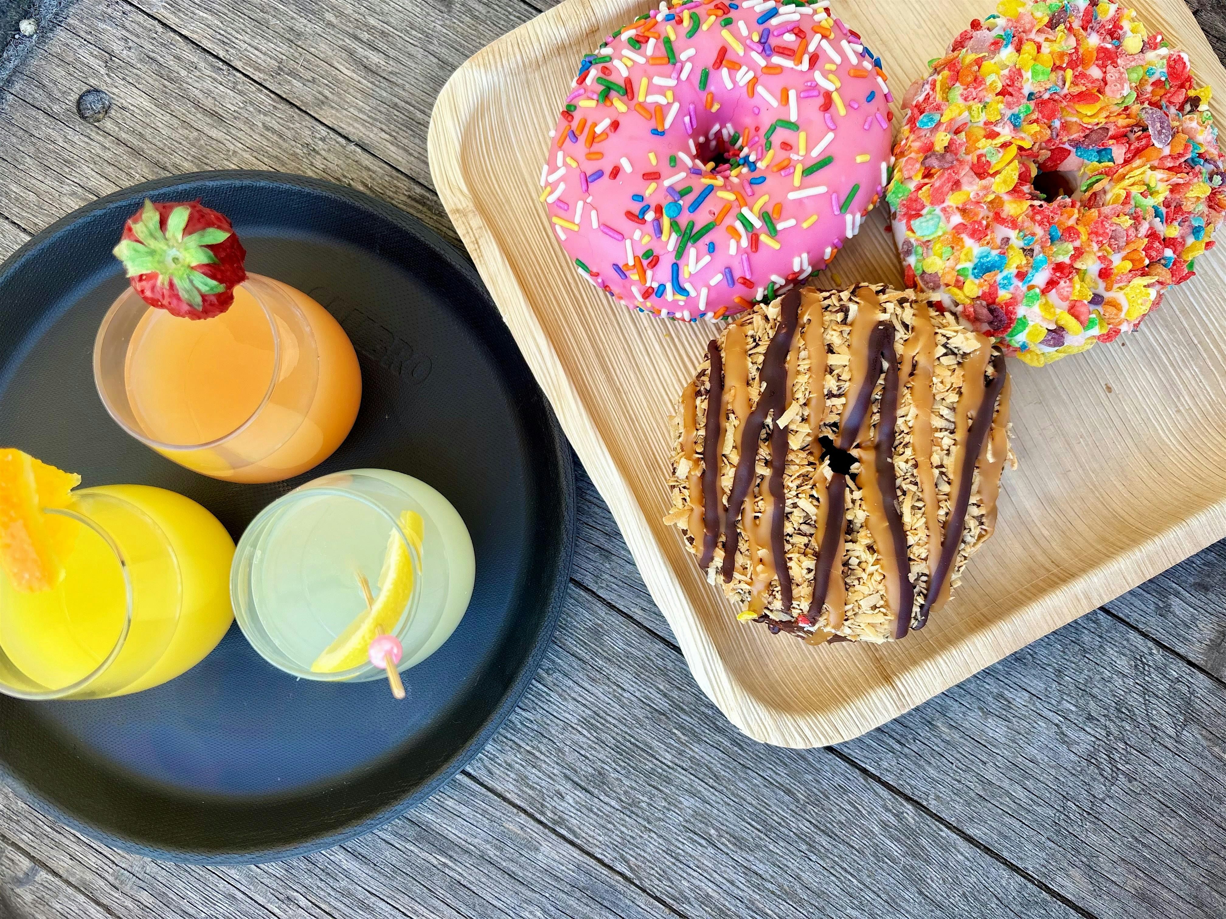 Celebrate mom with a mini artisan doughnut & craft mimosa flight, featuring doughnuts from NoFoDoCo!