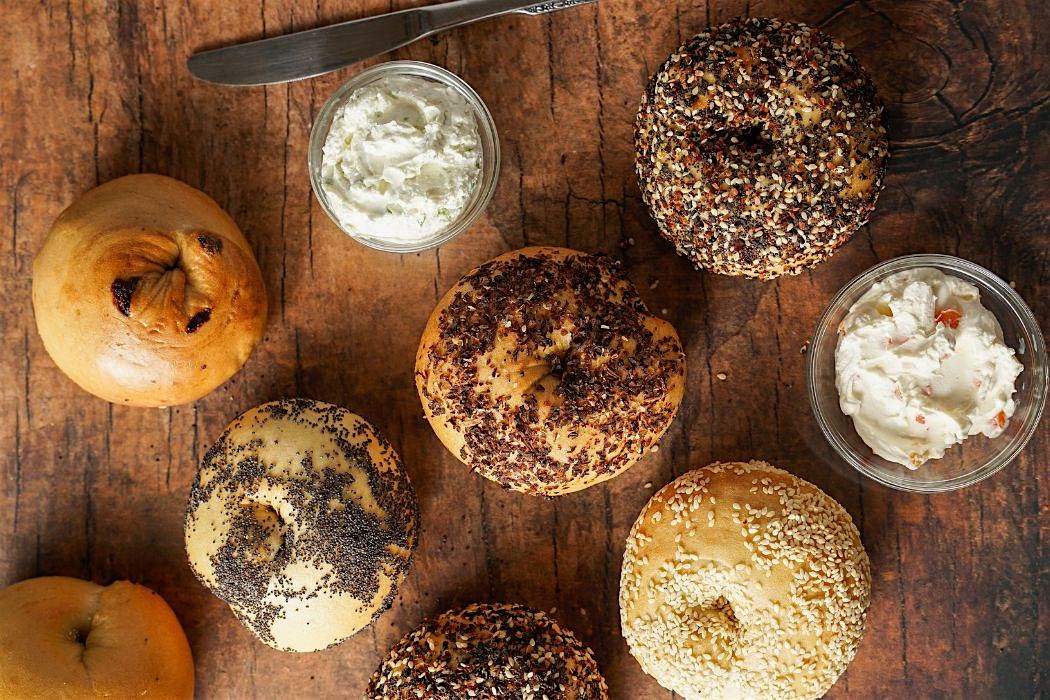 In this hands-on New York style bagels class, participants will make their bagels 100% from start to finish including mixing, kneading, and shaping the dough by hand, boiling the bagels to get the perfect dense texture, and baking them for a crispy-on-the-outside finish. Each student will also make their own flavored cream cheese with a variety of add-in options.