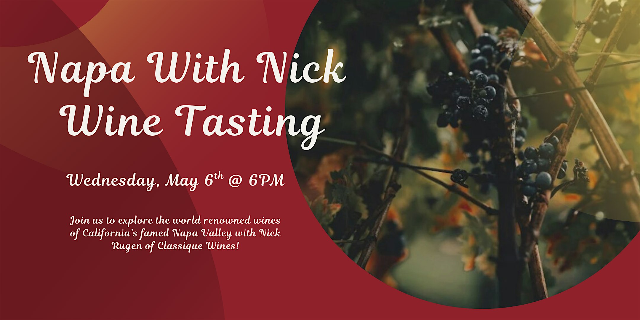 Our next wine tasting has us exploring one what is arguably the most well renowned wine producing area in the United States, and one of many famed wine regions around the world! That's right, we'll be talking about Napa Valley and on Wednesday, May 6th we'll be tasting its bounty, too! It's pretty amazing how a region that is only 67 square miles boasts over 400 wineries. But don't take our word for it, join us to see (and taste!) for yourself!!
