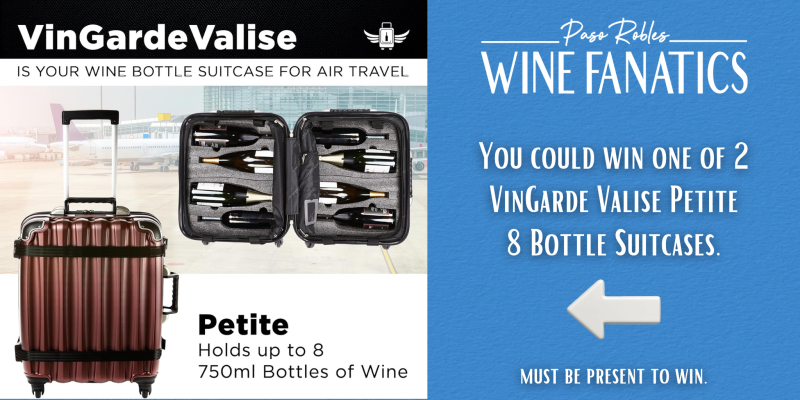 Saturday afternoon we will enjoy wine from 5 wineries (Caliza Winery, Alta Colina Vineyard & Winery, Guyomar Cellars, Loma Seca Winery & Turtle Rock Vineyards) , a gourmet meal prepared by Chef Ryan Swarthout; gourmet desserts prepared by La Migliore Italian Bakery all while enjoying live music by Sami & The Groove. Throughout the event we will be giving away door prizes (including 2 VinGardeValise Luggage - Petite 8 Bottle Suitcases) . Oh and did we mention the event will be MC'd by Adam Montiel a San Luis Obispo County radio celebrity!