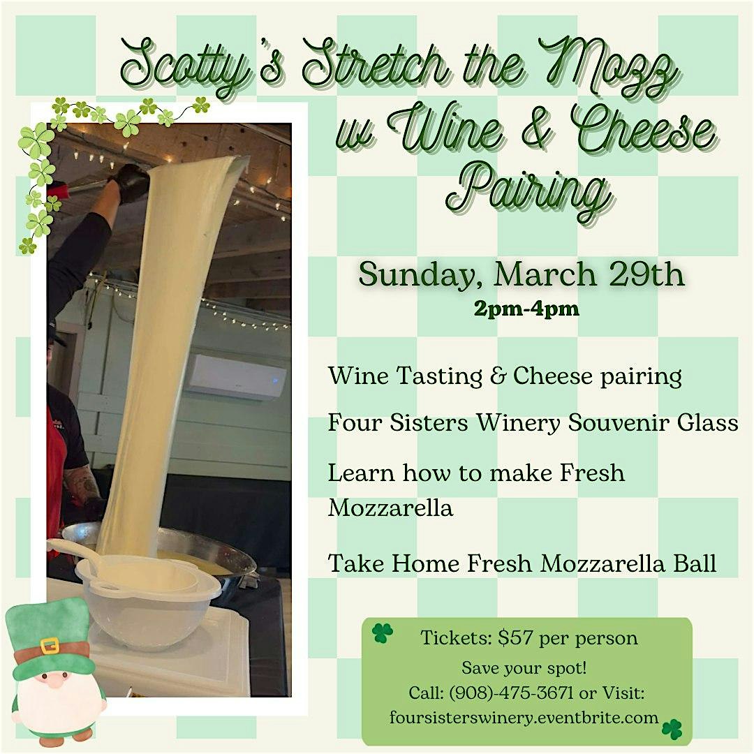 Join us in person for a chill evening of stretching the mozz—yep, that gooey, delicious mozzarella—paired perfectly with some fantastic Four Sisters Wine & cheese. It’s a fun, relaxed vibe where you can savor tasty bites while enjoying great company. Whether you're a cheese lover or just looking for a sweet hangout, this event’s got you covered. Come hungry and ready for good times!