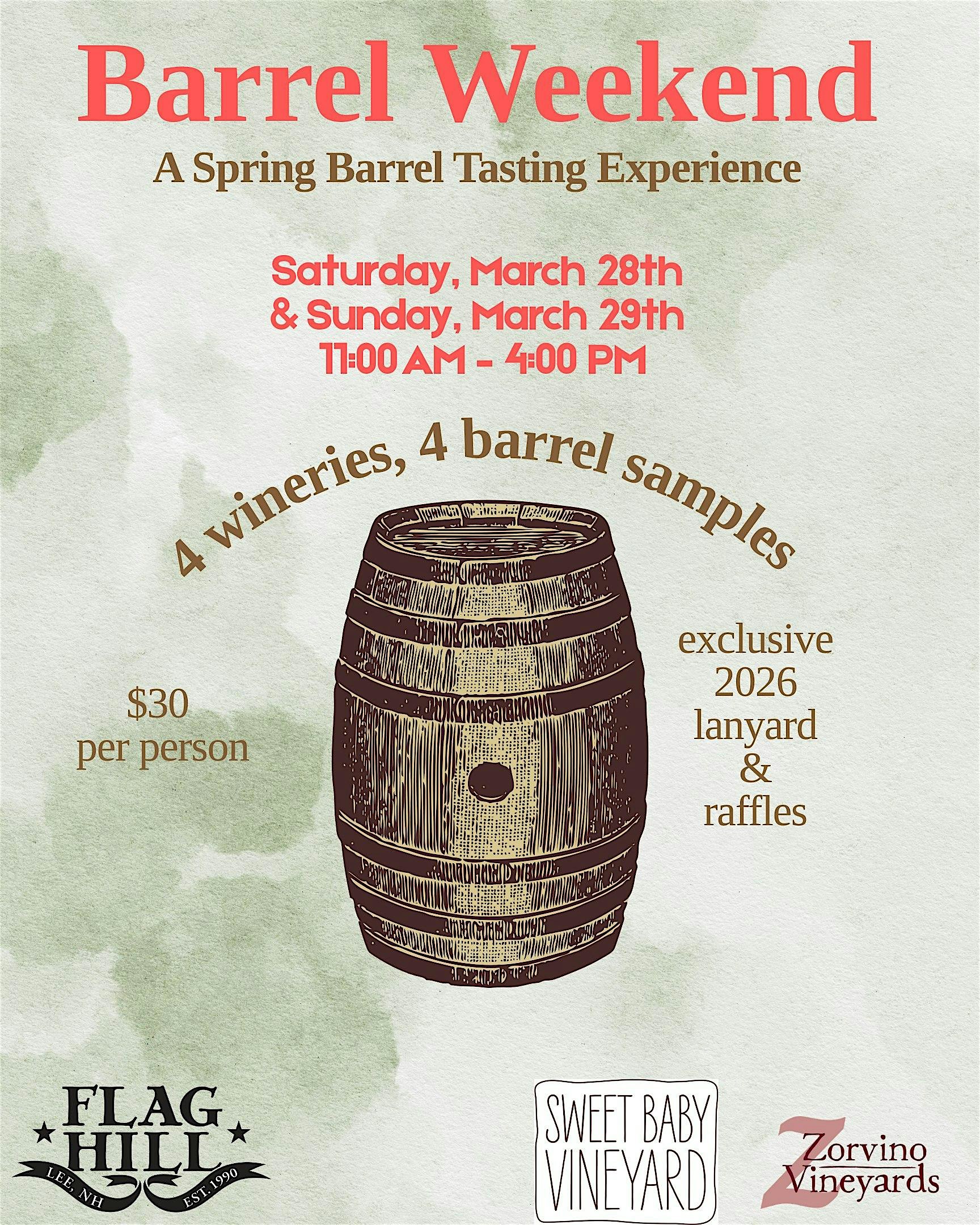 Seacoast Barrel Event weekend is back! Join us Saturday and Sunday March 28th & 29th for an amazing straight from the barrel tasting experience. You will be able to visit 4 wineries over the course of the weekend for a unique look into the production side of the wineries with our winemakers. This year we will be giving out an exclusive barrel event lanyard with your stamping ticket. Once you've reached all 4 wineries, turn it in to be entered into a raffle! Prizes will be: