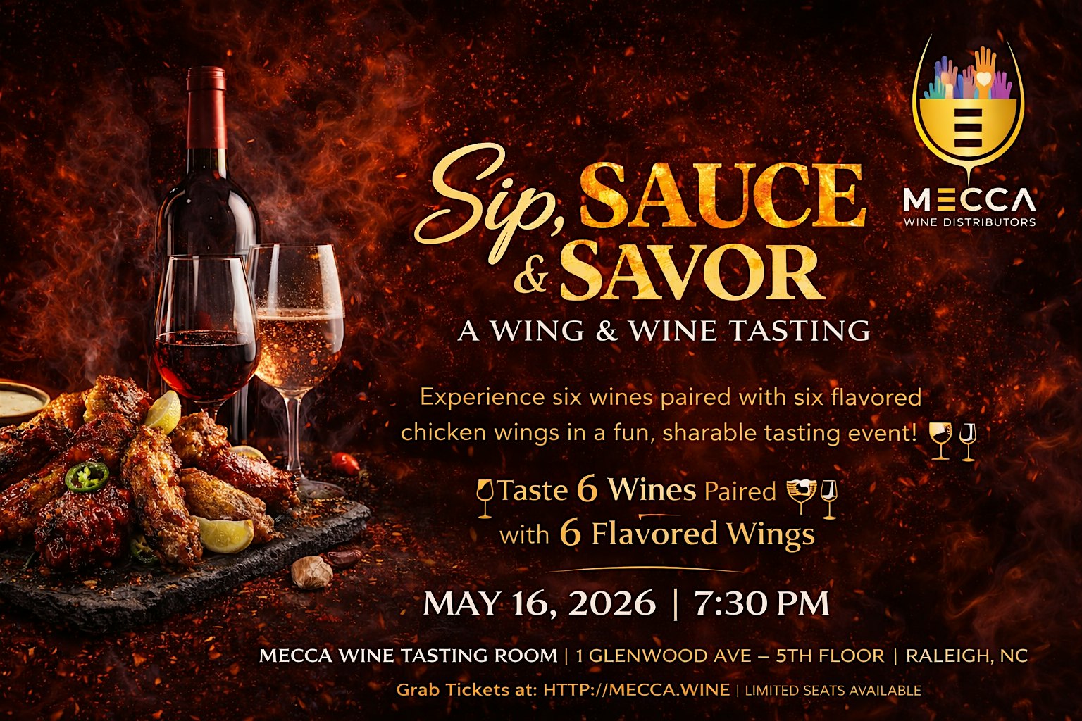 Whether you’re a wine lover, a wing enthusiast, or just looking for a fun night out in Raleigh, this tasting is guaranteed to be flavorful, educational, and a little bit saucy.