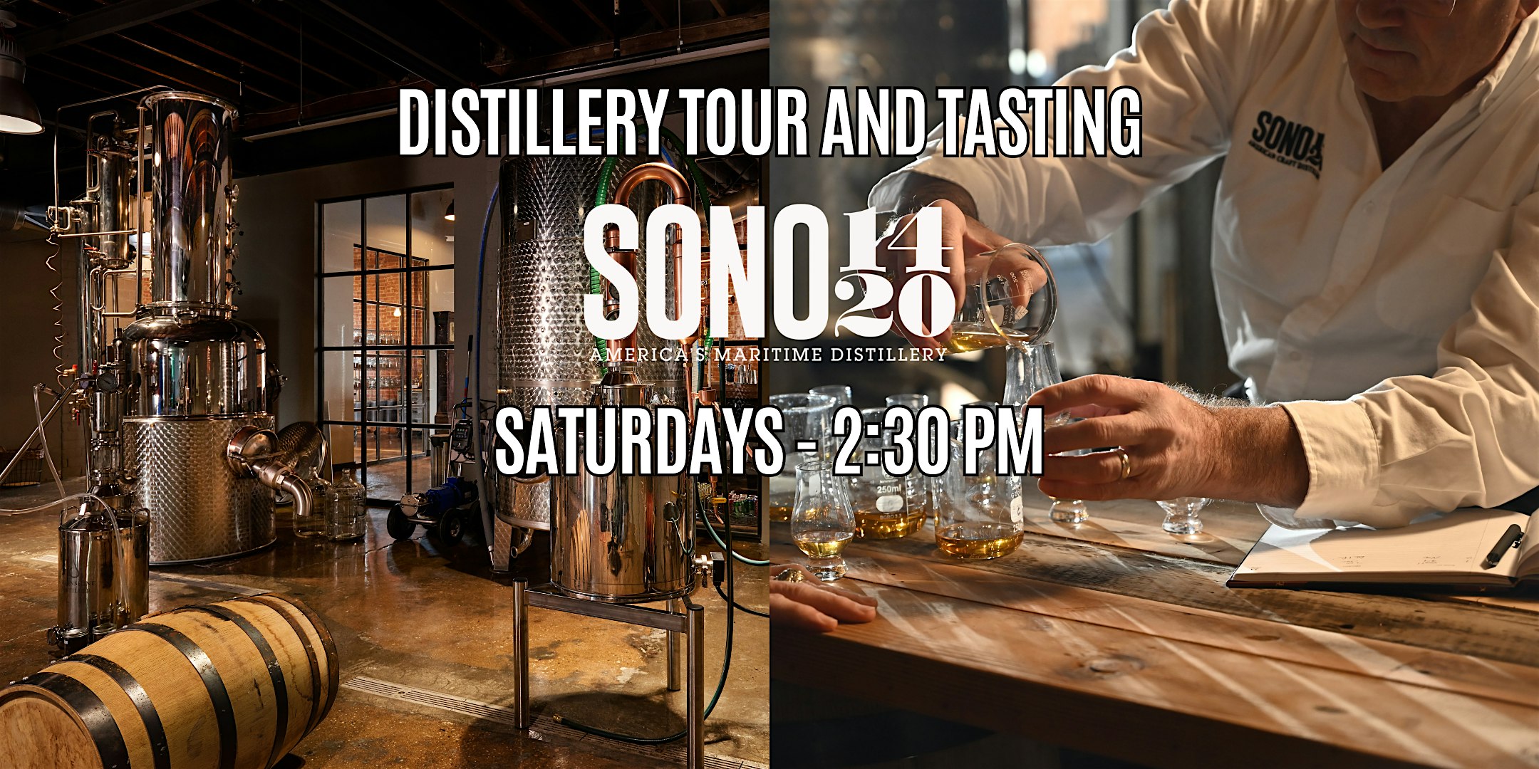 Join SoNo 1420 on Saturdays at 2:30 PM for an exclusive tour and tasting at our craft distillery! Led by our team, this experience includes: