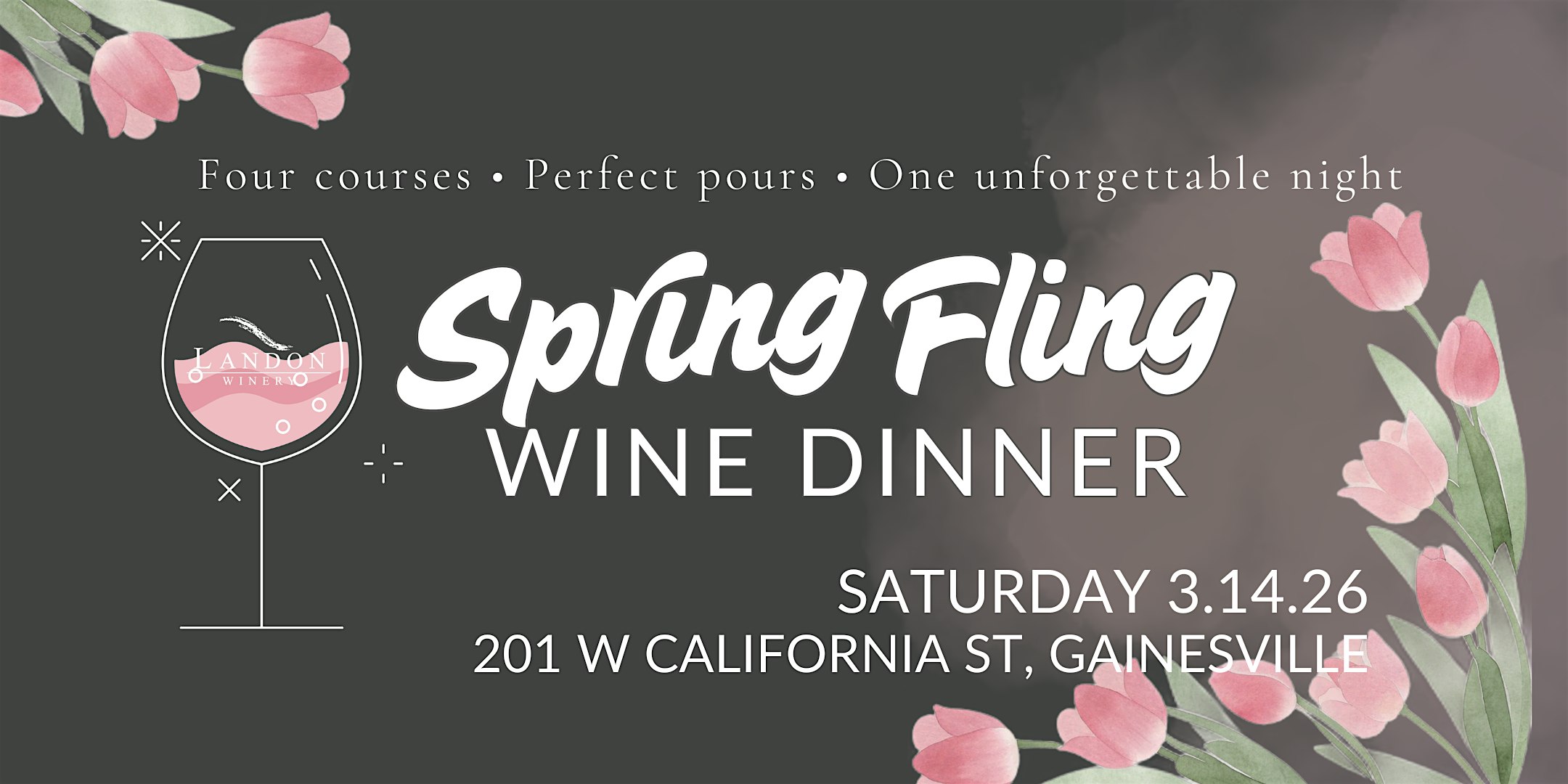 Spring is in the air at Landon Winery! Join us in Gainesville for a beautifully curated Spring Fling Wine Dinner featuring fresh seasonal flavors, thoughtfully crafted courses, and perfectly paired Landon wines.