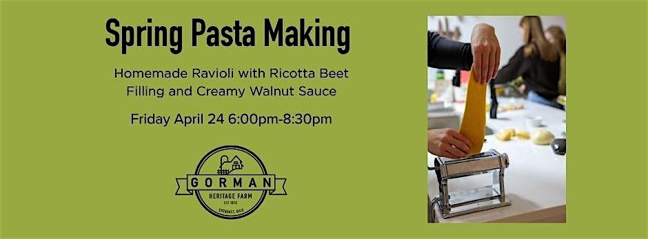 In this instructor-led cooking class, pairs will work together to knead their own batch of fresh made pasta dough, roll out and cut pasta shapes, and cook their beautifully prepared pasta with a sauce made from scratch by Chef Katie. Participants will make the egg based dough from scratch, prepare the beet and ricotta filling, and learn how to roll and fill their ravioli. Then you'll sit down to enjoy a well earned and delicious homemade pasta dinner complete with a fresh salad and dessert, also prepared for you by Chef Katie using seasonal ingredients from the farm.