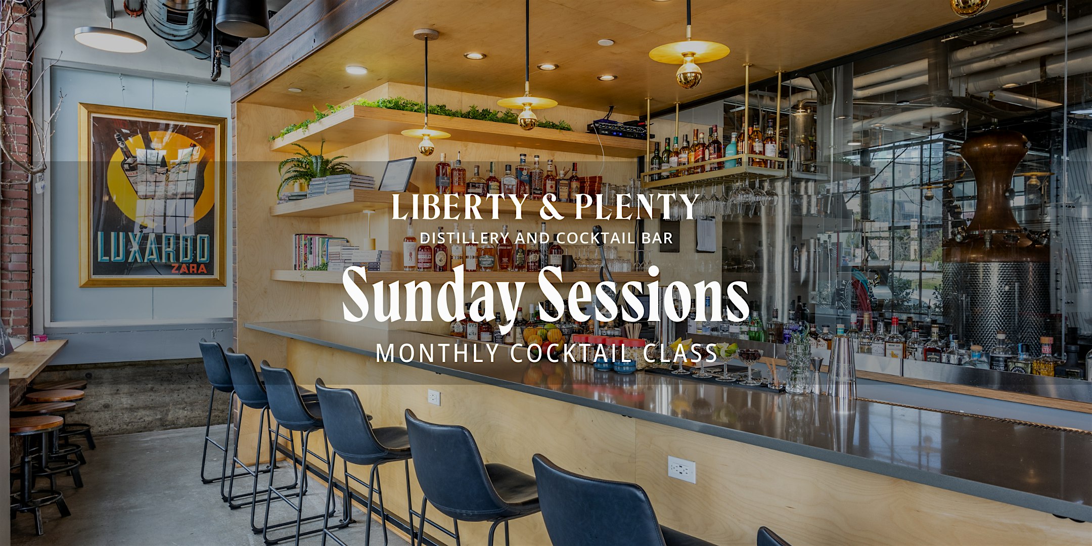 Come learn your way behind the bar. Sunday Sessions is Liberty & Plenty's monthly cocktail class . A hands-on, distillery experience where you'll learn to make two craft cocktails from scratch, guided by our team in the distillery.