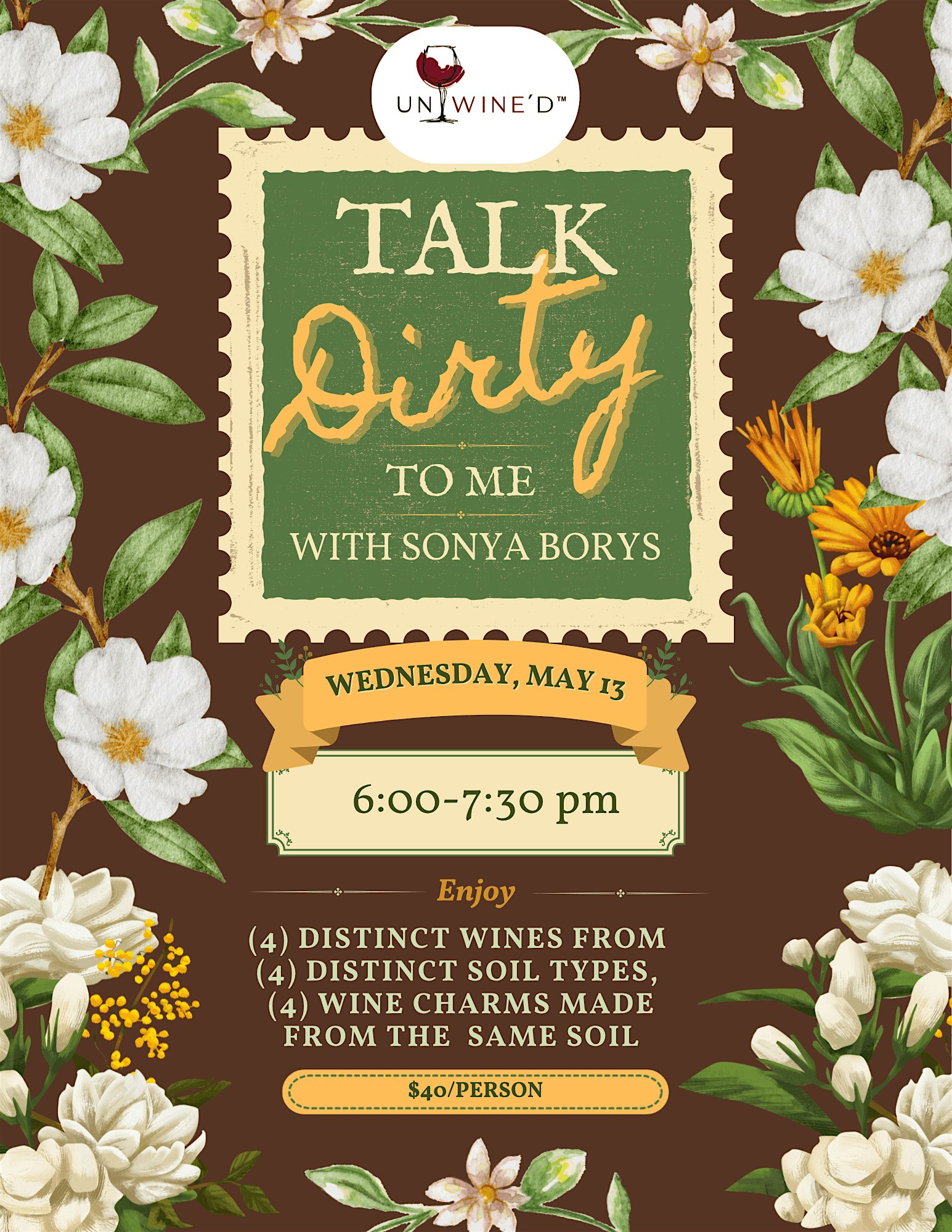 Ever wondered why two wines made from the same grape can taste completely different? The answer is often right beneath your feet. Join expert Sonya Borys for an evening of sensory exploration where we "talk dirty" and dive deep into the world of soil. Soil types are a critical piece of the terroir puzzle. In this 90-minute session, you won’t just learn about dirt—you’ll taste its influence and take a piece of it home with you.