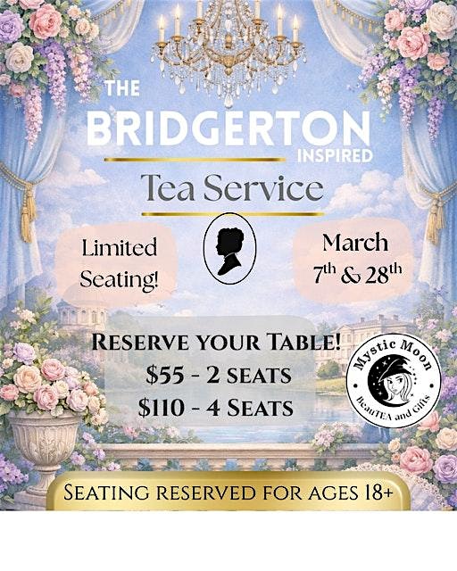 Regency-inspired attire is optional—whether dressed to the nines or simply yourself, the magic awaits! This enchanting tea service promises charm and beauty worthy of Lady Whistledown herself.