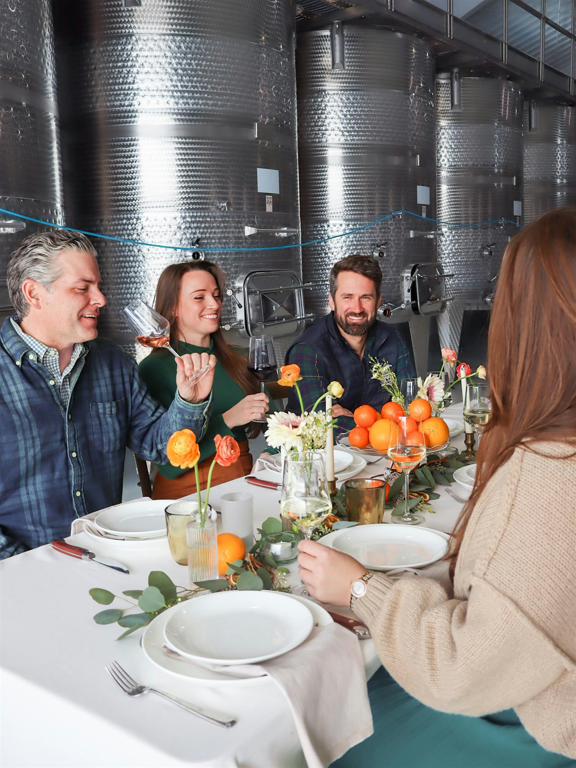 For one night only, we’re opening the doors to our tank bay for an intimate five-course, six-wine paired dinner. The evening begins with a welcome pour and passed canapés in the barrel room before guiding you behind the scenes of the cellar for a rare, immersive dining experience among the tanks. Thoughtfully curated pairings, seasonal flavors, and an unforgettable setting—this is a night at the vineyard you won’t want to miss.