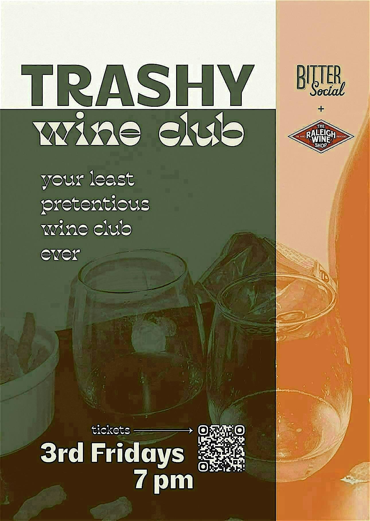 come learn about wine with Evan from Raleigh Wine Shop--each month we will have 4-5 different wines paired with a favorite trashy snack, you pick a snack and we'll pour you a glass designed to be paired with that snack. Each month has a different snack theme.