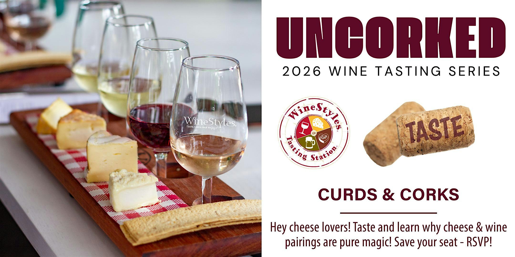 Join us for Curds & Corks, an installment in our Uncorked Educational Wine Series, where we explore the fascinating relationship between wine and cheese through a guided tasting experience.