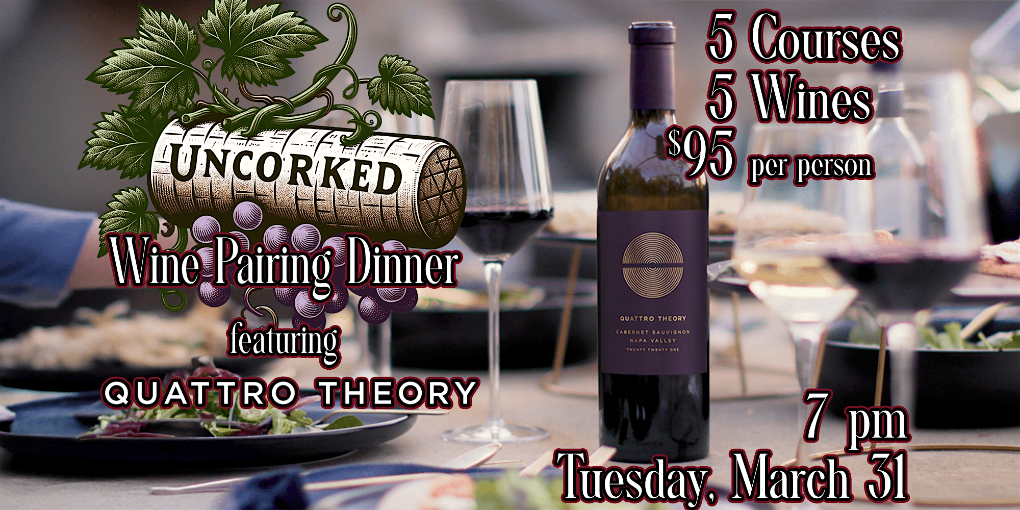 Join us for another unforgettable evening in our Uncorked wine dinner series as we welcome the expressive and beautifully crafted wines of Quattro Theory.