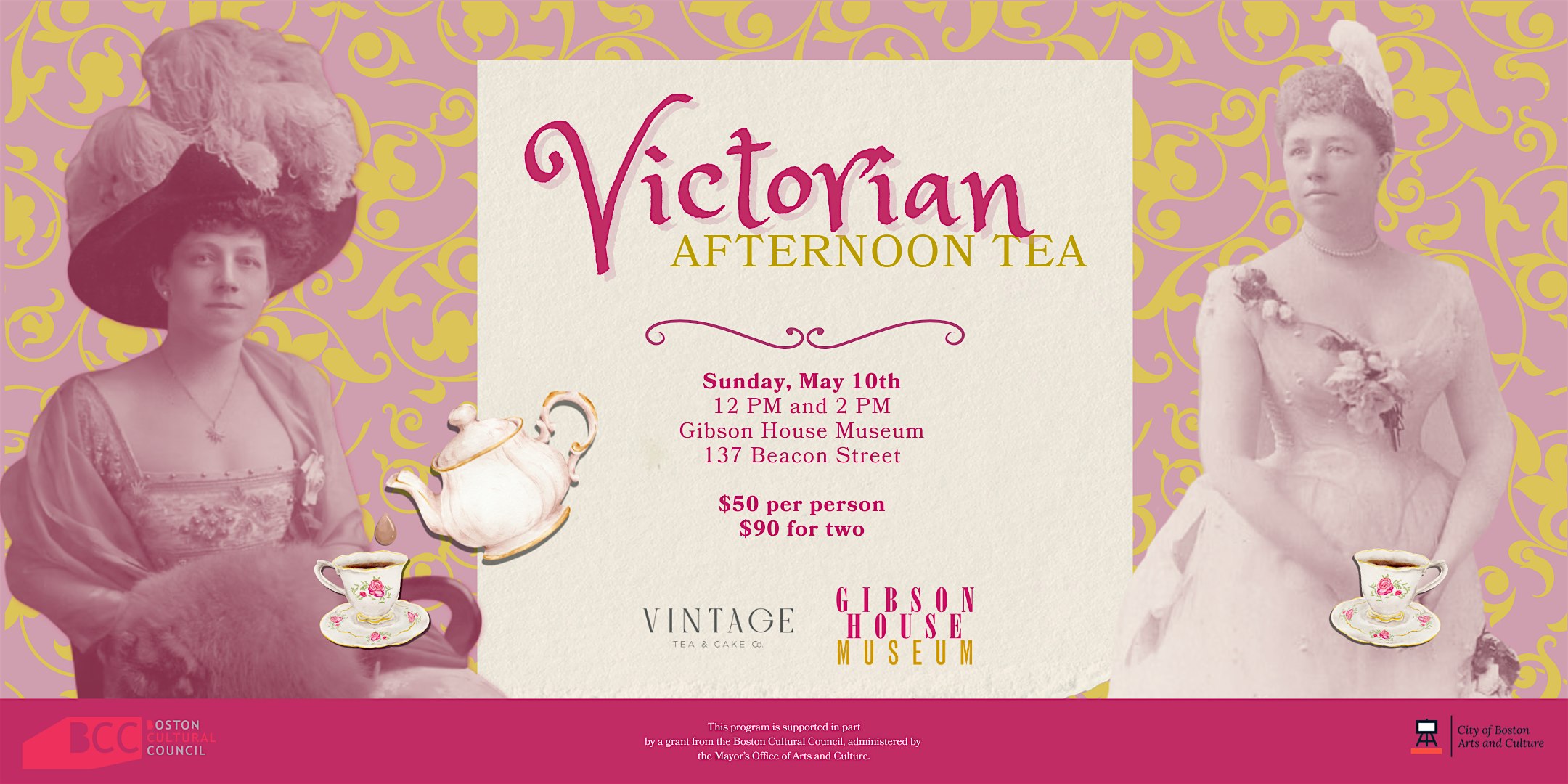 Tea time reservations are 90 minutes, and begin at 12 p.m. and 2 p.m. Tea service will include sandwiches, patisserie, French macaroons and your choice of tea. This will be a prix fixe menu, so please reach out to programs@thegibsonhouse.org for any dietary concerns.