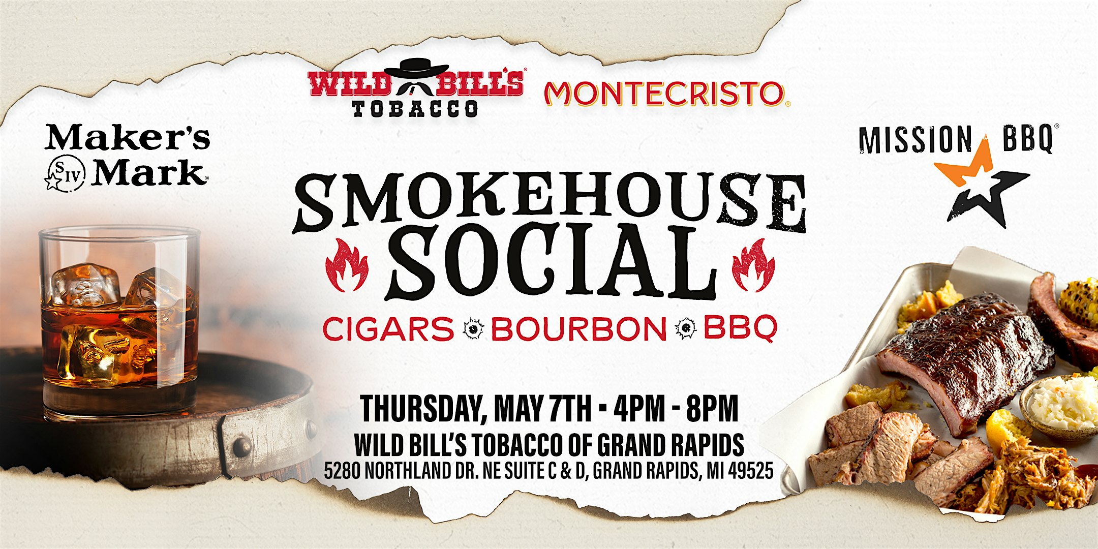 Wild Bill's Smokehouse Social! Join us at Wild Bill's Tobacco in Grand Rapids Michigan for this special event with Montecristo Cigars as we spend the evening with great cigars, Mission BBQ, and Makers Mark pairings!