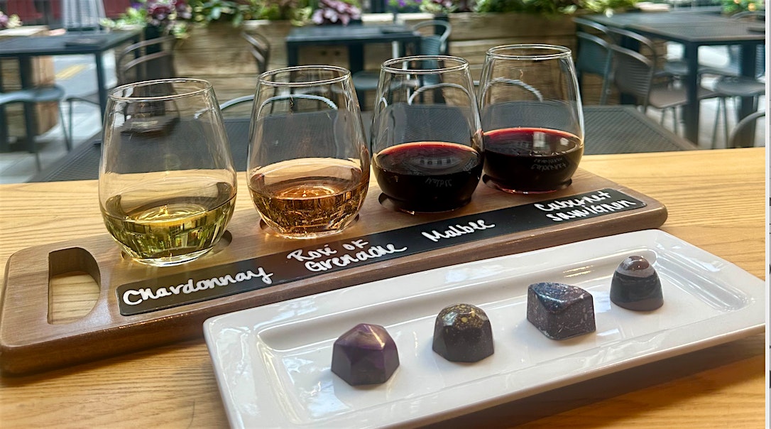 Wine and chocolate: a romance as old as time! Try four wines and four paired chocolates from a local chocolatier, and learn more about the fun and creative ways food and wine can bring out the best in each other! Your tasting experience will include a wine flight of four wines, and four chocolates.