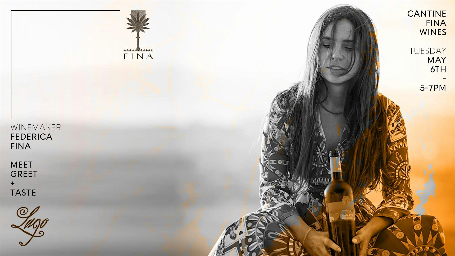 Meet the one and only, Federica Fina and try some amazing Fina wines. Ticket includes a glass of wine and live music from Emma Nichols. Bottles of wine will be available for purchase and Federica will be signing bottles upon request. Cocktail style setting. Full food and beverage menu will be available for purchase.