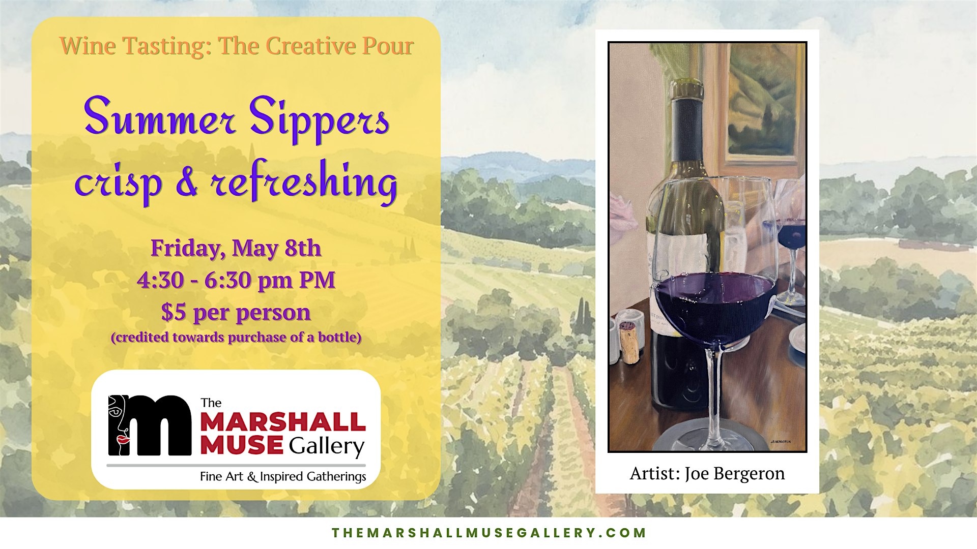 We’re uncorking something new at Marshall Muse Gallery. Join us for Wine Tasting: The Creative Pour, a casual, come-and-go tasting where art and wine share the spotlight.